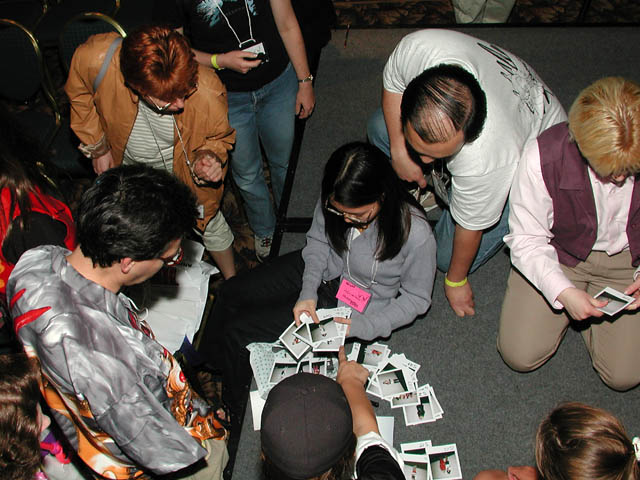 Cosplayers assault the cosplay coordinator for photos of themselves.